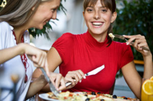 Happy friends at restaurant, selective focus, canon 1Ds mark III