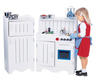 I love how nice the kitchen set is.  The white wood goes very well with any bedroom decor unlike some of the big bulky plastic kitchen sets I’ve seen before.  This kitchen set blends in with Noah’s room and with it being white in color it makes it unisex unlike Gabby’s past pink play kitchen.  Gabby is 8 years old loving it and Noah enjoys playing pretend at the age of 4.  I really could see this used for all ages and the durability seems that it will last a long time.