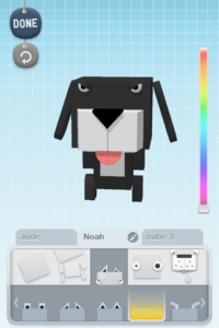 I downloaded the Cube Dog iPhone app this week for the kids and I to play. We have had a blast making our own 3D Cube Dogs. There are numerous options for styles of dogs, shapes, ears, eyes, body, and even nose. Then of course you get to select the color of your dog and name it.