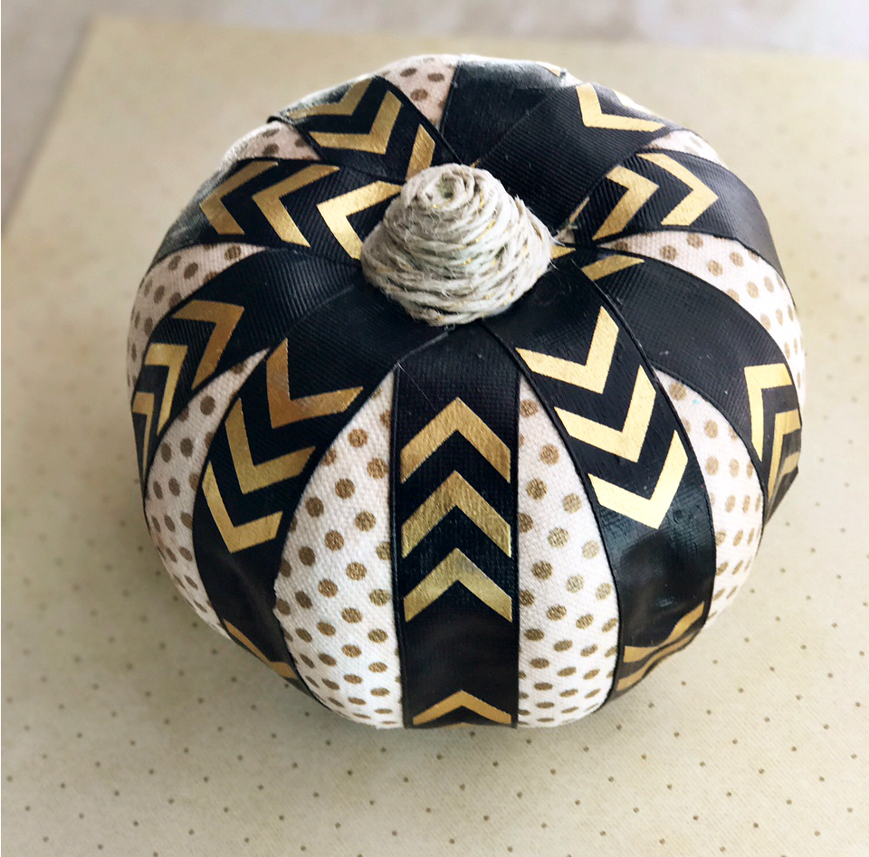 Isn’t this pumpkin adorable? I love the gold and black ribbon, but feel free to use any color scheme that matches your home decor. It looks cute sitting on your coffee table or countertop.