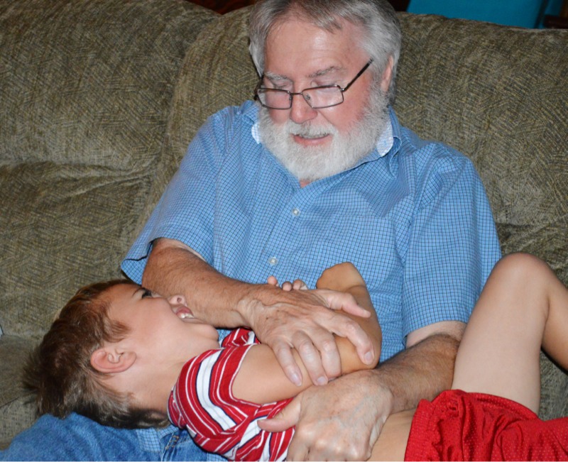 My mom took this photo of Noah wrestling with my dad. He loves his papaw. This is the kind of memory he’ll cherish for a lifetime. I absolutely love the big smile of laughter on his face.