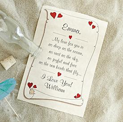 Message in a Bottle – Generic store bought cards are boring. Send your loved one a romantic message in a bottle. A fun way to make your love letter look like it truly came from a bottle is by using cream colored paper to give it that ‘old’ feel. You can also burn the edges of the paper slightly. A handwritten note is always sweet and you can add some sand or small pebbles into the bottle. Maybe even confetti… Another idea is to include an old photo of you and your significant other. Preferably one of the photos from when you first got together.