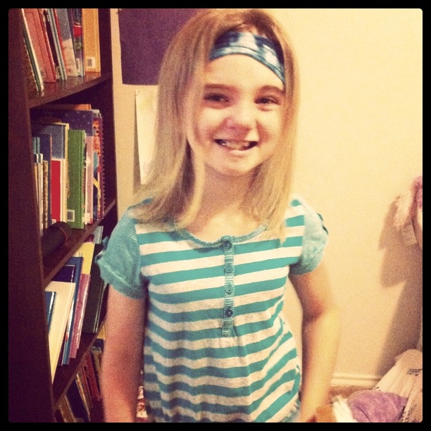 Gabby was extremely self-conscious about her bandage. All weekend she told me how ugly it made her look. So when we had our first public appearance to visit yet another doctor appointment I tried to work a little magic and cover the bandage with a scarf.