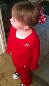 After dinner and bath time she got into my closet and picked out a pair of shoes she thought would be a good fit. She had fun playing with them and although she struggled getting them on, she held her patience until she succeeded. Doesn’t she look adorable standing there in my high heels?