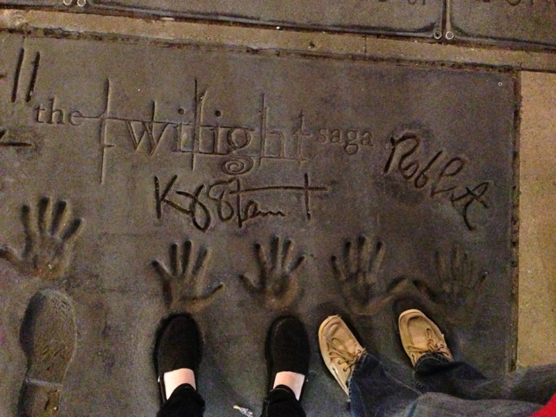 On T’s Life List she has one of her goals to see the Hollywood sign. Although she was able to see it from a distance we weren’t able to drive up the mountain to view it closer because the park closes at sunset and we spent our evening at the Walk of Fame. She didn’t complain because she was too excited about putting her hands in the prints of Robert Pattinson and standing in his footprints. Being a huge Twilight Saga fan she was thrilled to see the place designated to the main stars at the Chinese Theater.
