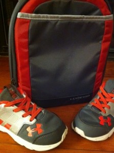 Noah has taken his lunch to school every day since he started kindergarten. He loves helping me pack his lunch tote and pick out his snacks. Even though this was totally unplanned, the lunch tote matches his new school shoes perfectly.