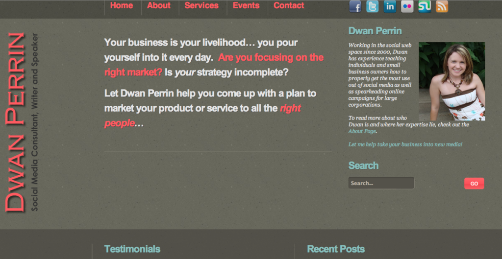 Not only is DwanPerrin.com a landing page to tell more about myself and link to my social media networks, I also wanted to provide testimonies and my resume for potential clients to see. I am still adding a full write up on my About page and adding in testimonials but you can get a glimpse at how it looks so far. I know sometimes when a company is looking to hire help they will have one person in house search for resumes and then take to their HR department or someone else to make the final decision. That’s why I thought it would be a great idea to include my resume to be downloaded. That way a company can print it to review if they’d like.