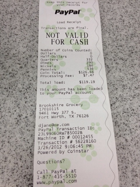 Thanks to Collective Bias and their #PayPalCoinstar campaign, I was told about the option of visiting our local grocery store, Brookshire Grocery, to use their Coinstar kiosk and transfer my change to my PayPal account.  As someone who doesn’t usually carry much cash on me this option worked perfect.  It’s the easiest way for me to have extra funds in my PayPal account and be able to transfer directly into my checking account.  Nothing beats the convenience of driving down the road to access my PayPal account.