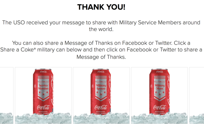 Share a Coke with your military hero this summer and send a free message through the website. I was able to share my message of appreciation in only a minute!