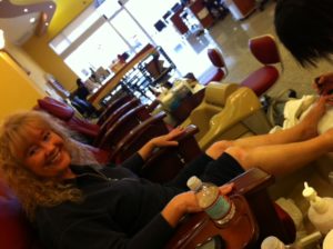 Last Sunday Gabby’s new play therapist came to visit Gabby and provide me a couple of hours of respite. Gabby really enjoys playing board games and putting together puzzles with her. They seem to have hit it off wonderfully which is great. Gabby has a tendency to be closed off at times so for her to find someone she clicks with is a blessing. During my two hour respite I took T to meet my mom at the nail salon so the three of us could get pedicures. It was nice. It was relaxing. It was long past due.