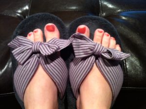 My guilty obsession that I can’t go without, flip-flop house shoes. I love all flip-flops, especially house shoes. This past week the simple thing that made me smile was spending two hours indulging in a girls day out with my mother and T getting our toes done while sitting in a massage chair and laughing among ourselves.